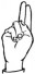 На ћирилици написано КОСТА КЉУКОВНИЦА састоји се из 15 слова [?]. Исписано ћириличном једноручном азбуком за глувонеме: